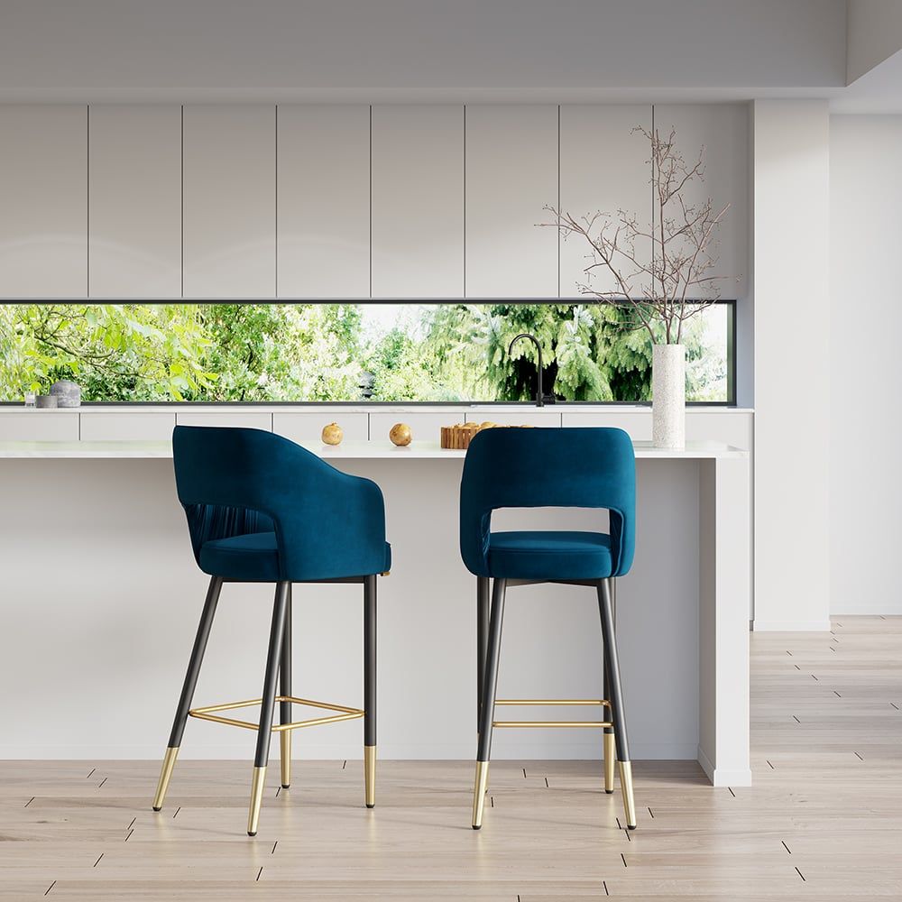 Modern Velvet Bar Stools with Upholstery Blue