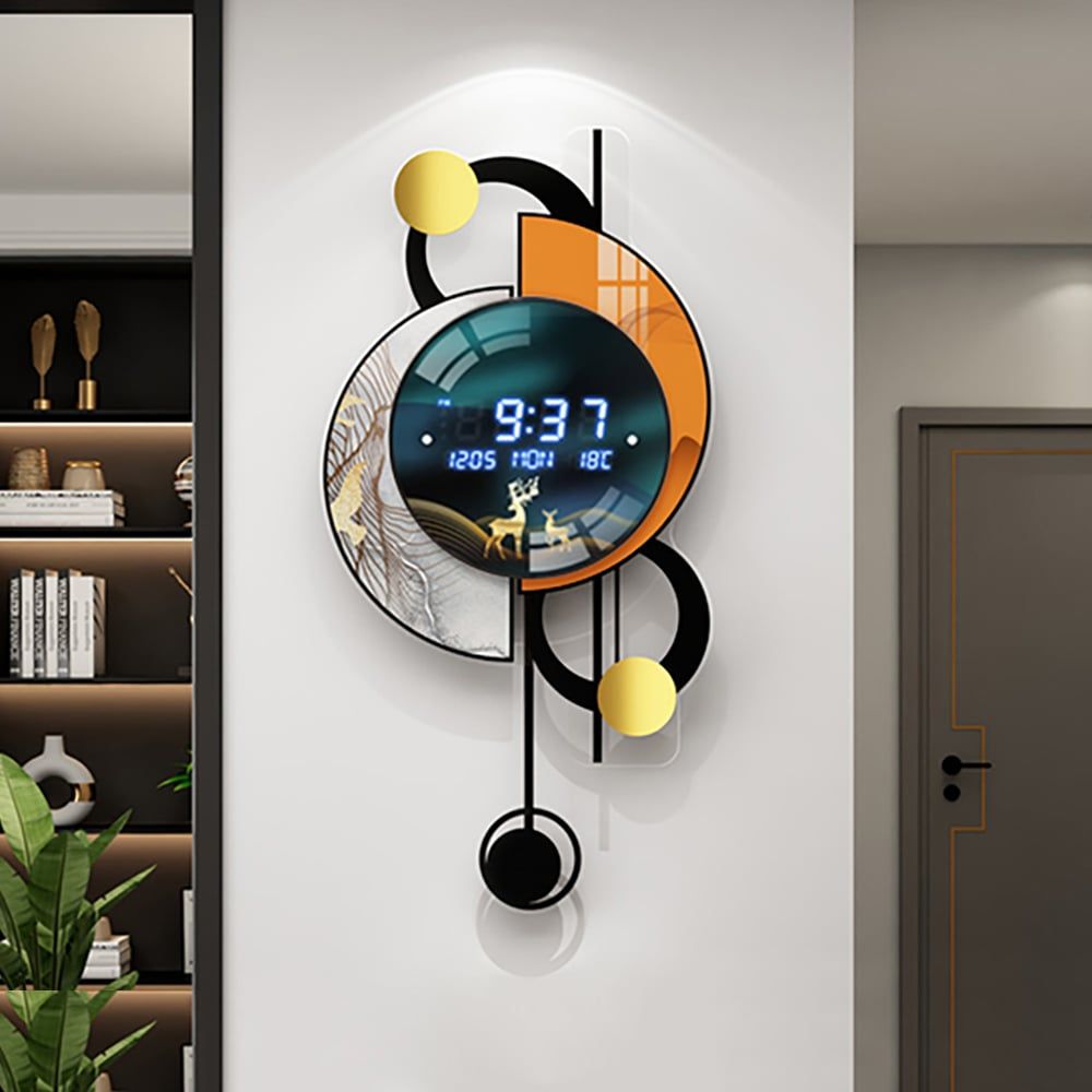 Home > 26.4"LED Silent Wall Clock Multi-function Display Voice-Activated, Dual Power Suppiy