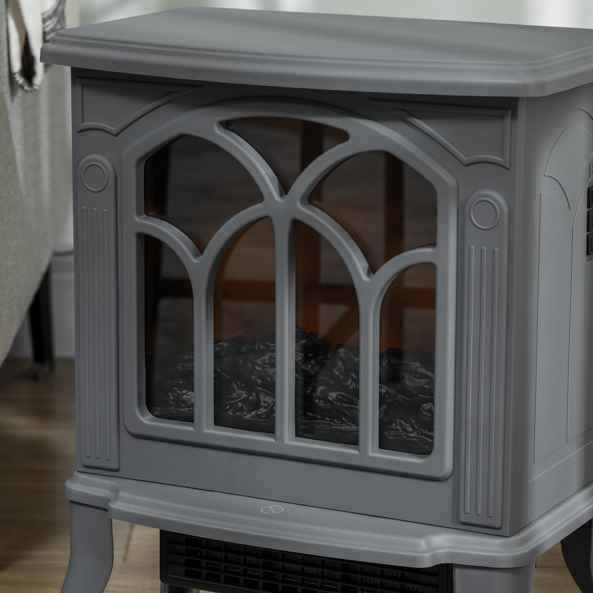 Home > HOMCOM 17" Freestanding Electric Fireplace Stove, Fire Place Heater with Realistic Logs and Flame Effect and Overheat Protection, 750W/1500W, Gray