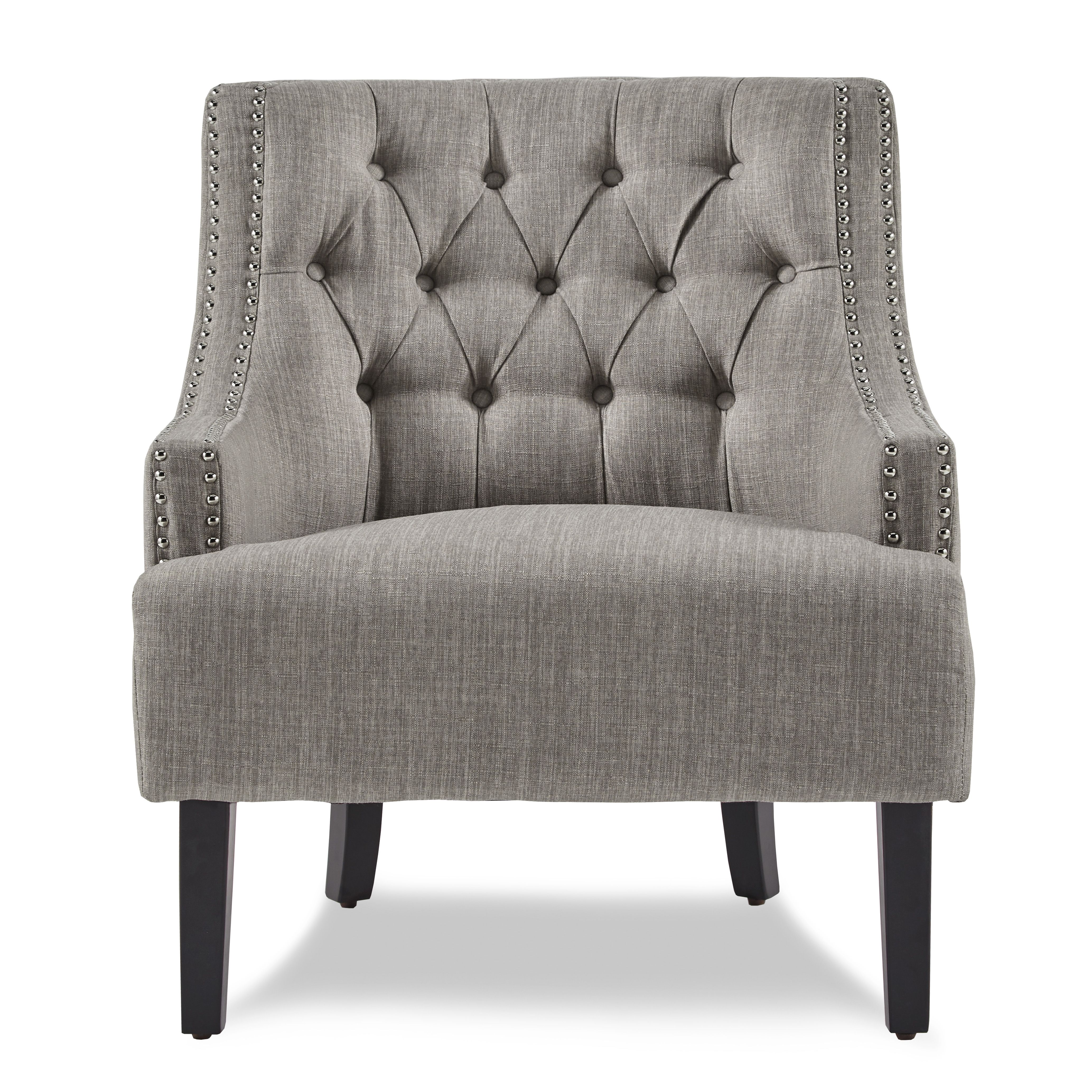 Modern Traditional Accent Chair Button Tufted Taupe Fabric Upholstery Solid Wood 1pc Living Room Furniture