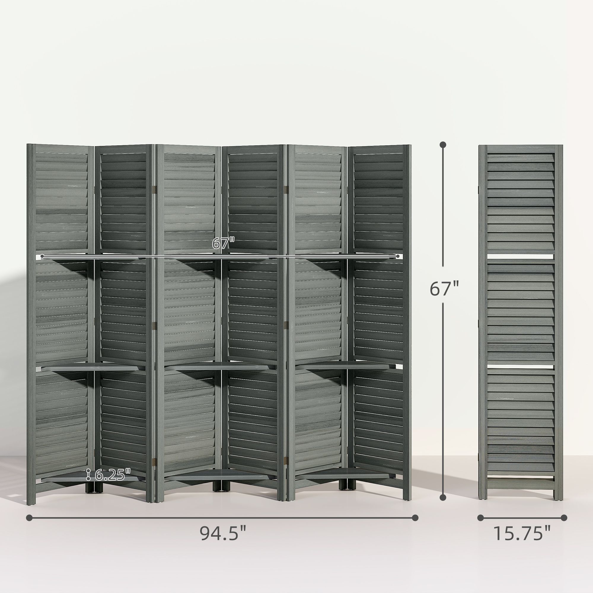 HOMCOM 6 Panel 67" Tall Wood Privacy Screen Room Divider with 3 Shelves and Folding Storage for Bedroom, Gray HOMCOM 6 Panel 67" Tall Wood Privacy Screen Room Divider with 3 Shelves and Folding Storage for Bedroom, Gray HOMCOM 6 Panel 67" Tall Wood Privacy Screen Room Divider with 3 Shelves and Folding Storage for Bedroom, Gray